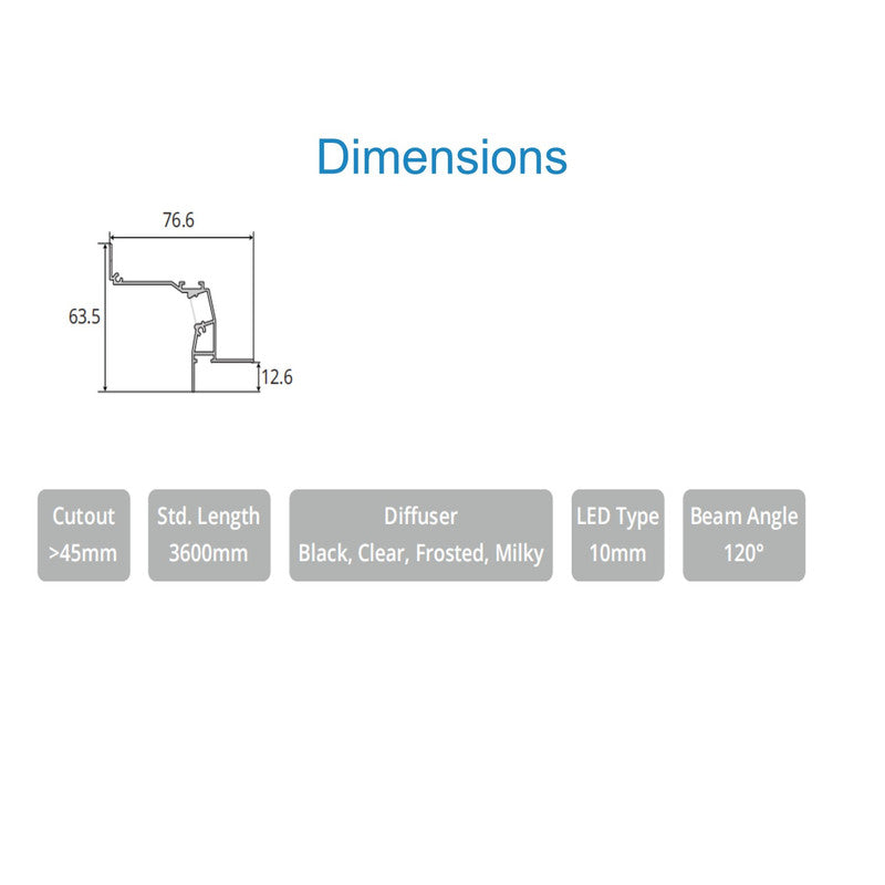Dimensions: L:3600mm x W:76.6mm x H:63.5mm