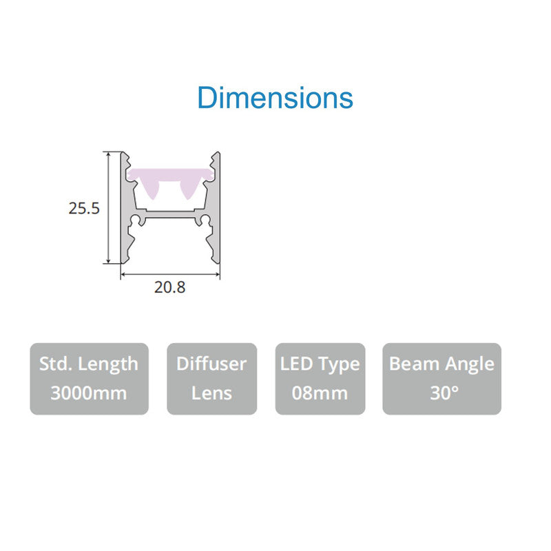 | Product dimensions in mm | W-20.8mmH-25mmL-2000mm |