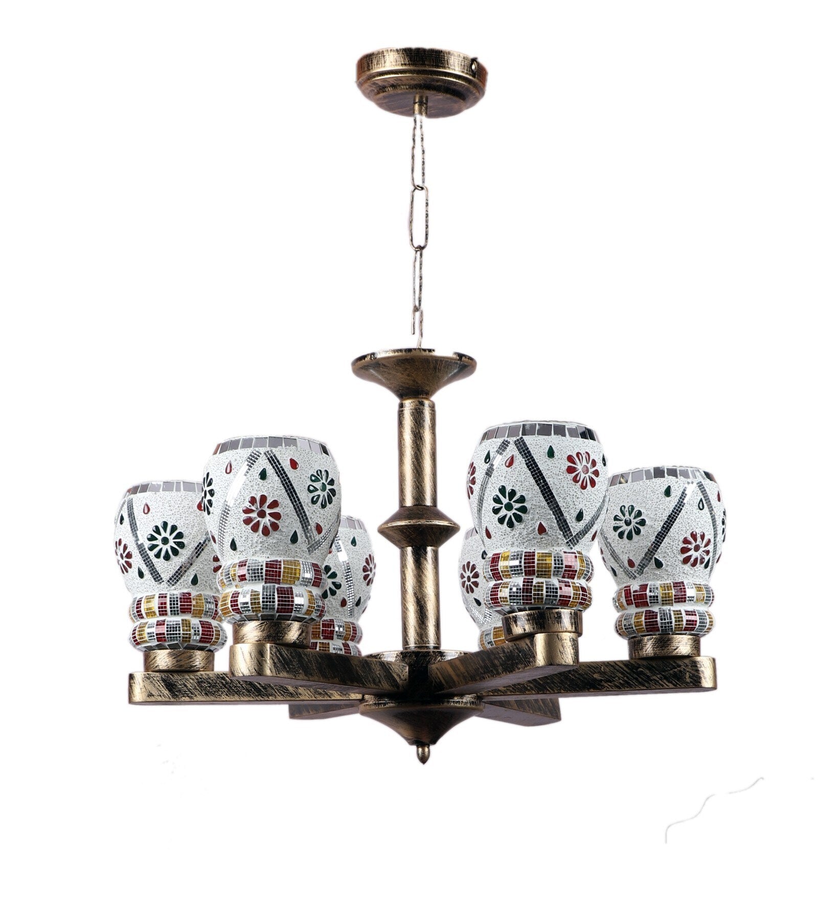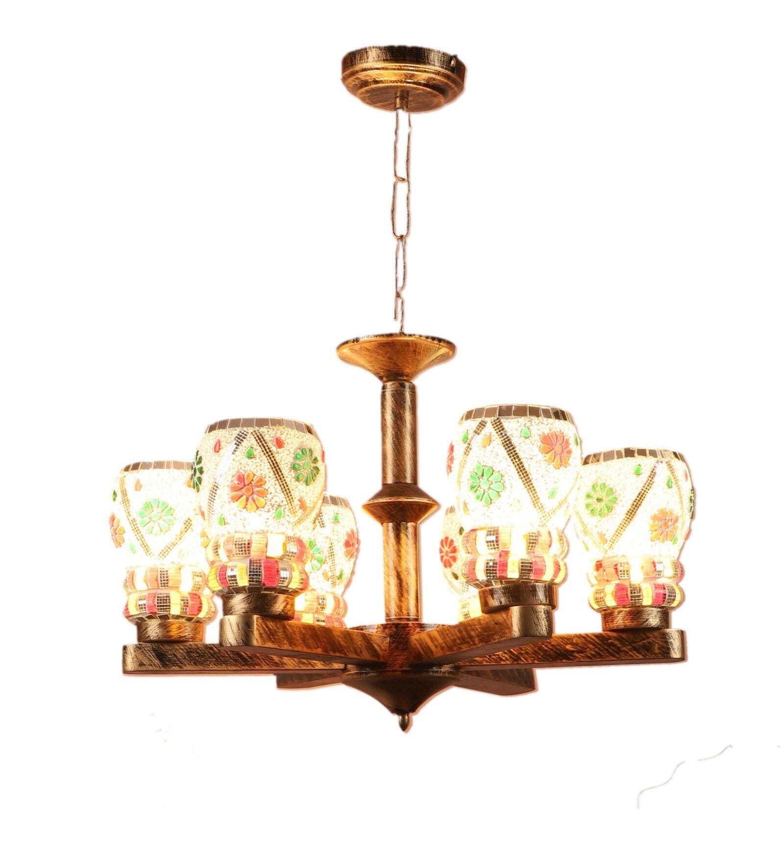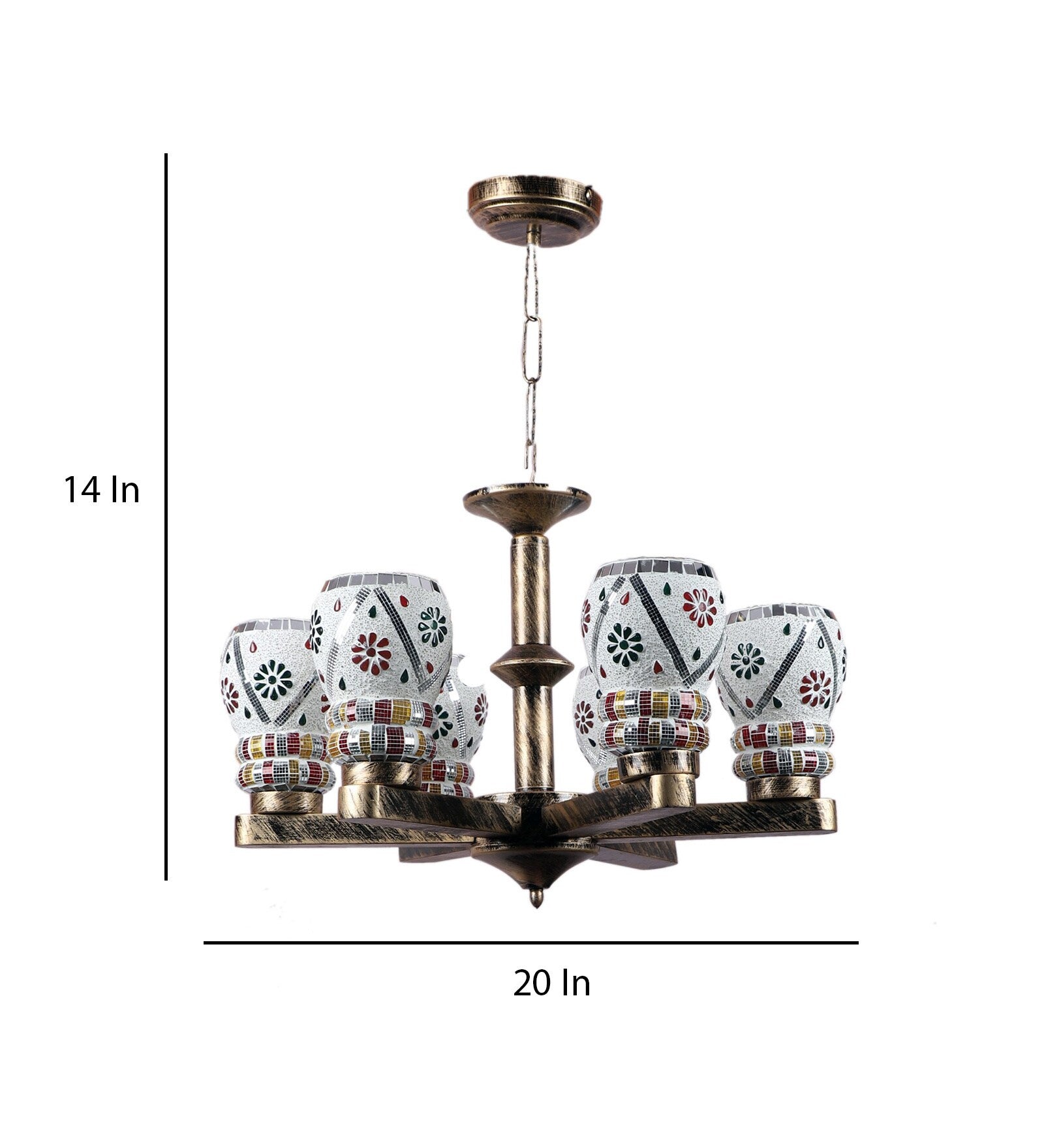 Eliante by Jainsons LightsVoila Antique Gold Glass Shaded Chandelier | JS-13901-6LP | Included Bulb | Eliante by Jainsons Lights
