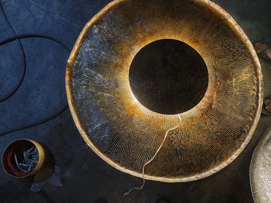 Transform your interiors with our 4 Feet Diameter Custom Metal Wall Light with Backlit Center Plate, a statement piece designed for luxury homes, hotels, and premium projects. This made-to-order designer wall light combines elegant craftsmanship with high-performance 36W Osram LED lighting in warm 3000K, creating a soft, ambient glow. With customizable frame finish and center plate size options, this fixture offers both versatility and sophistication to elevate any wall.