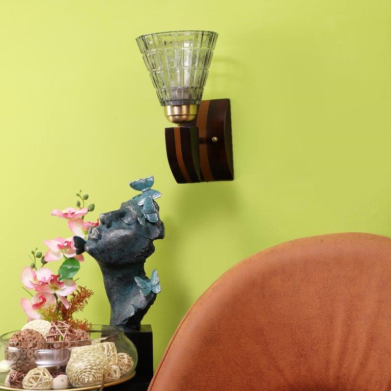 | Meta title | ELIANTE Brown Wood Base Blue White Shade Wall Light - 4334-1W-Blue - without Bulb |