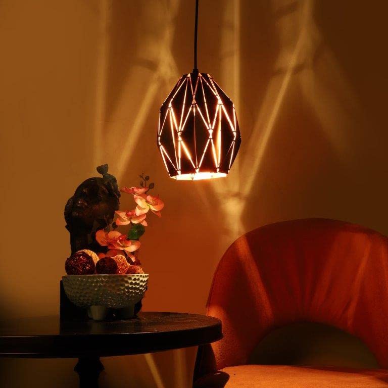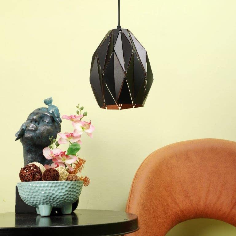 ELIANTE Iron Hanging Light Black Base Black White Shade Hanging Light for Living Room, Bedroom, Dining Room, Kitchen | by Jainsons Lights