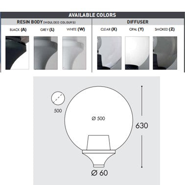 Fumangali GLOBE 500 Modern Pole Head Lights E27 Grey Made in Italy