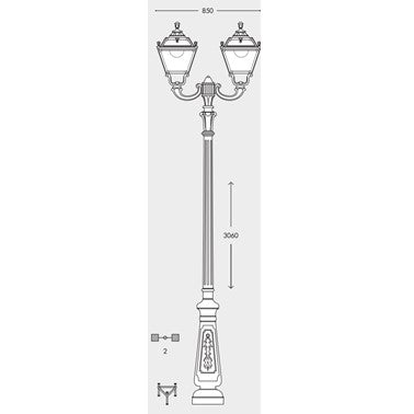Fumangali NEBO OFIR TOBIA 2L Classic Pole Light with Pole 30w Black/White Made in Italy