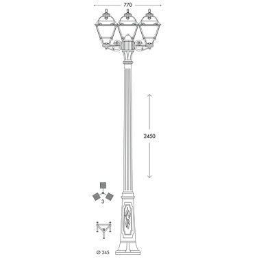 Fumangali RICU BISSO CEFA 3L Classic Pole Light with Pole E27 Black/White Made in Italy