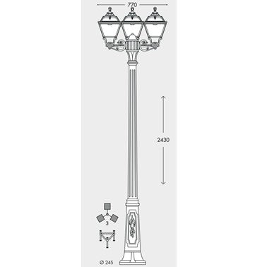 Fumangali RICU BISSO GOLIA 3L Classic Pole Light with Pole E27 Black/White Made in Italy