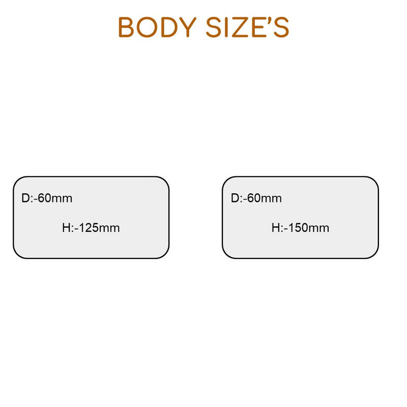 | Product dimensions in mm | D:60mm x H:125mm/150mm |