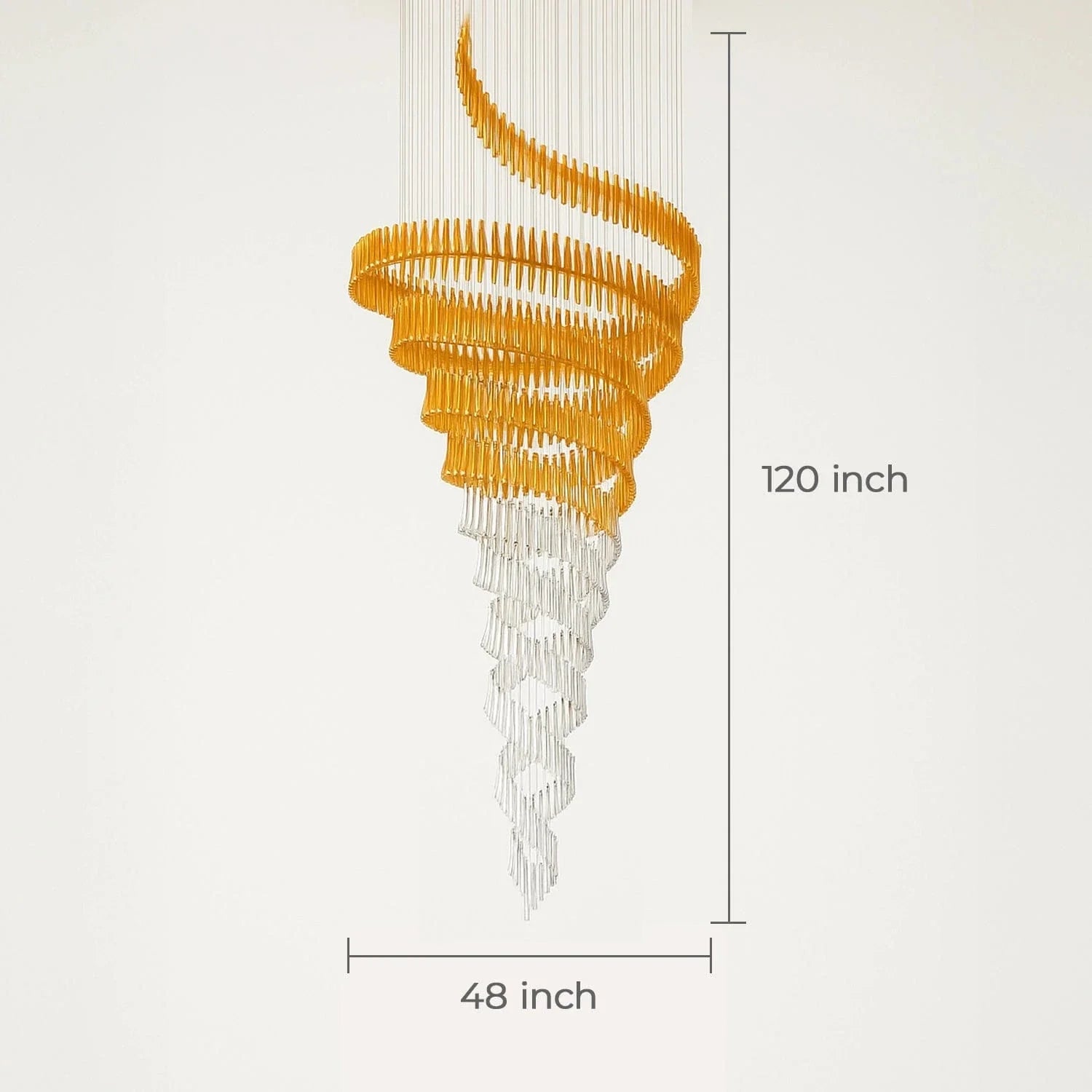 The Velora Spiral Atrium Light combines hand-cut amber & clear crystals with a gold mirror PVD finish. Perfect for duplexes, atriums, and hotel lobbies with 18–30 ft ceilings, this grand chandelier brings timeless elegance and radiant LED brilliance.