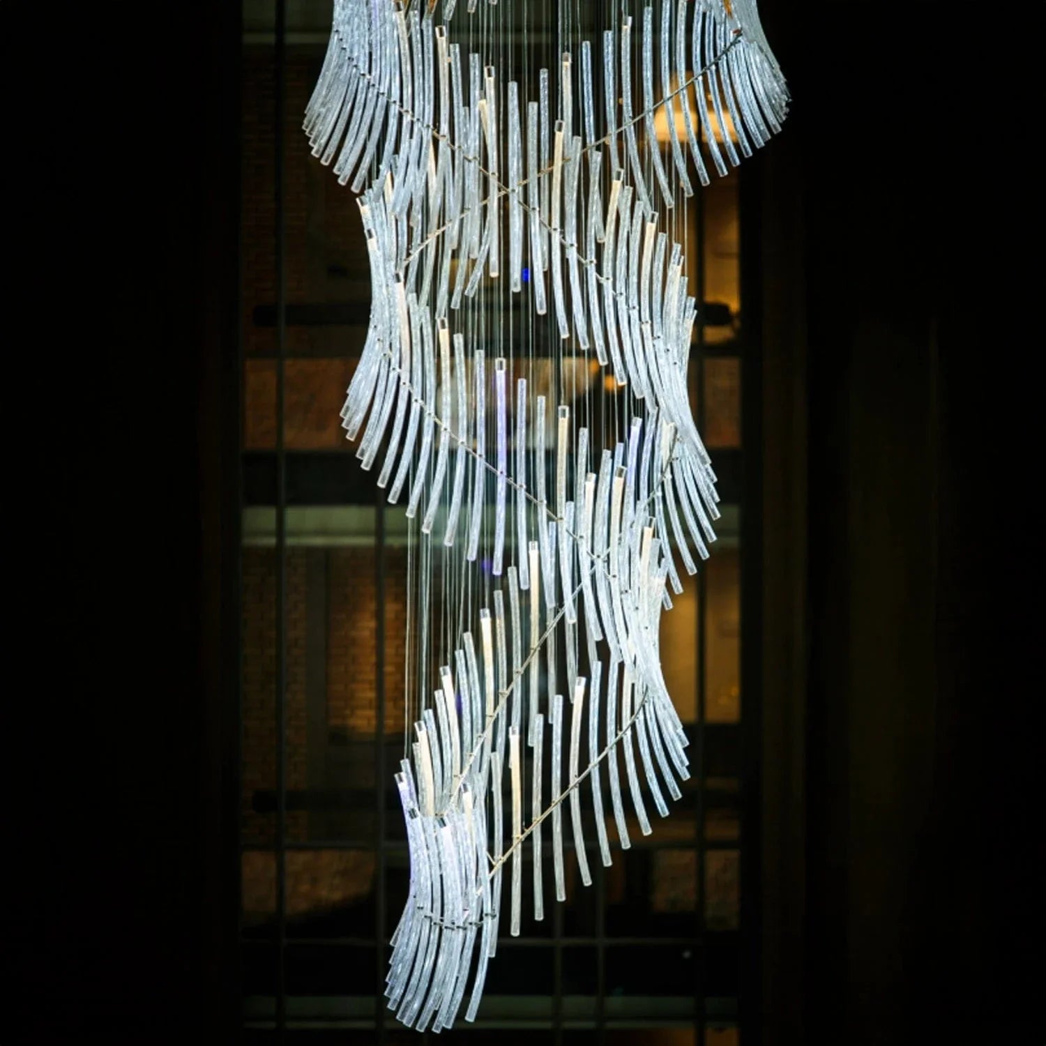Velora Spiral Atrium Light – Luxury Duplex Crystal Chandelier